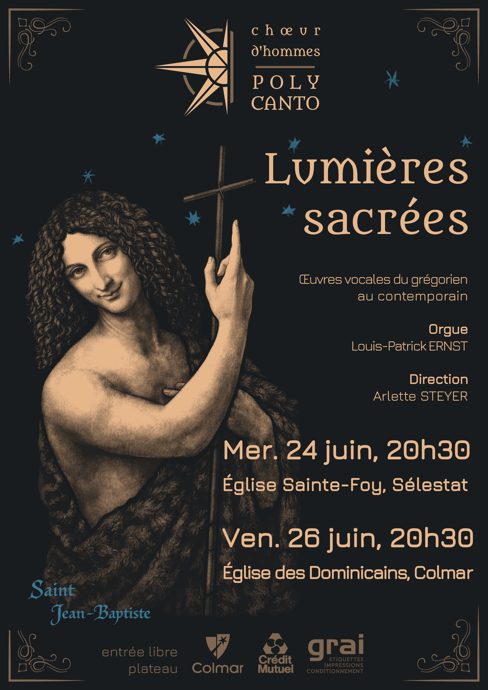 Dans la lumière de saint Jean-Baptiste, ce concert pour chœur d’hommes fait résonner des œuvres sacrées, du chant grégorien aux compositeurs contemporains, entre ferveur, mystère et intériorité.